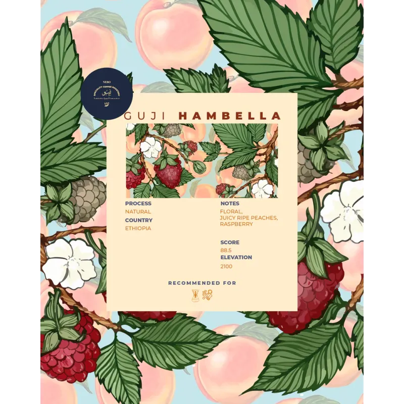 Guji Hambela Ethiopian coffee is one of the finest specialty coffee lots from southern Ethiopia. Grown at high altitudes in fertile volcanic soil, it delivers a clean and well-defined flavor profile.I..